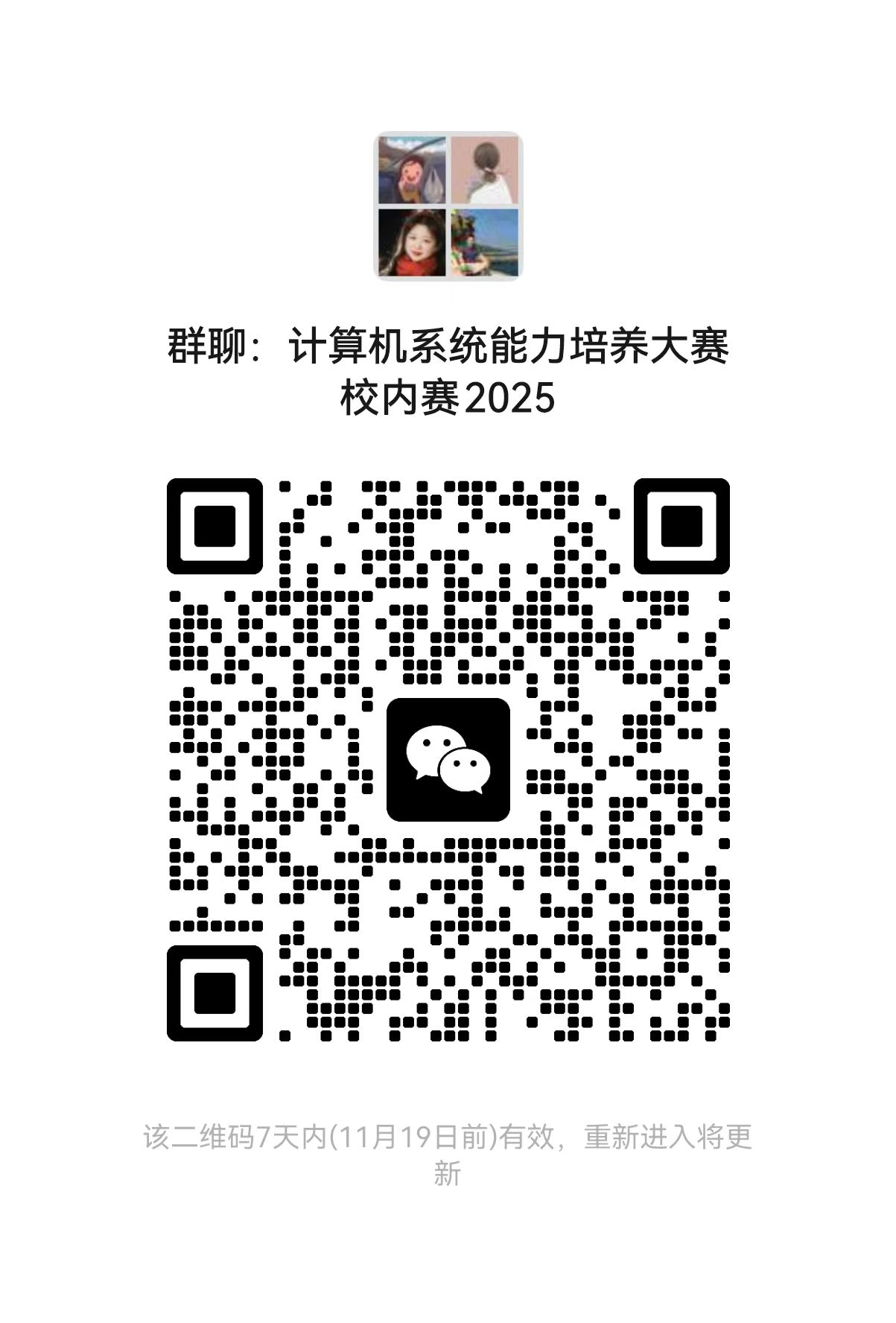2、初赛试题将于11月27日上午8:00在计算机系统能力培养大赛校内赛平台中面向报名参赛的同学公布,相关后续通知将在大赛微信群继续公布,请感兴趣的同学持续关注。