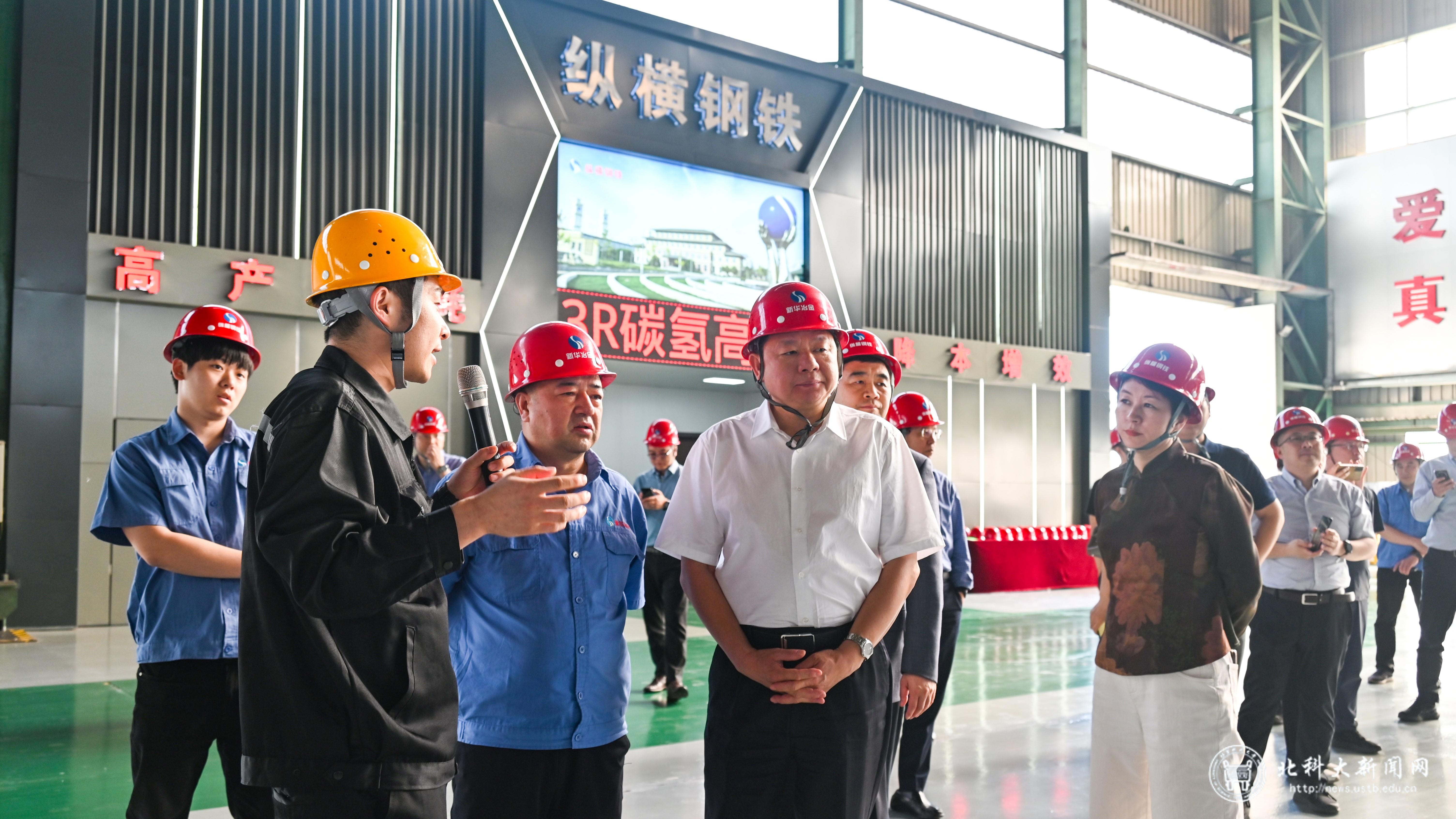 在迁安期间,杨仁树一行还赴河北新华联合冶金控股集团有限公司调研,参观了展厅及生产现场。座谈会上,杨仁树介绍了学校平台建设、人才培养、团队建设、产教融合等方面情况,并表示,学校坚持贯彻落实习近平总书记重要回信精神,重视产教融合,校企双方可以在成果转化、人才培养等方面重点合作。河北新华联合冶金控股集团总裁孙翔介绍了集团产业、发展规模等整体情况,并表示双方可以进一步深化合作关系,共同培养钢铁行业的高水平创新人才。