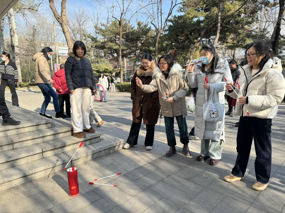 踢毽子环节中,彩色的毽子在空中翻飞,老师们之间配合默契,场外欢呼加油声不断;投壶项目也吸引了众多老师参与,教职工们屏气凝神、精准投掷,每一支箭投入壶中,都会引来阵阵喝彩,全程洋溢着欢声笑语。